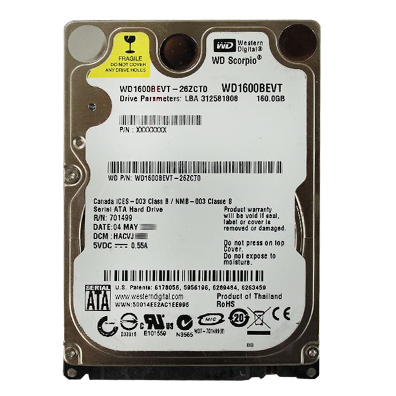 Western Digital – 160GB 5.4K SATA 3.0Gbps 2.5″ 8MB Hard Drive – WD1600BEVT-26ZCT0