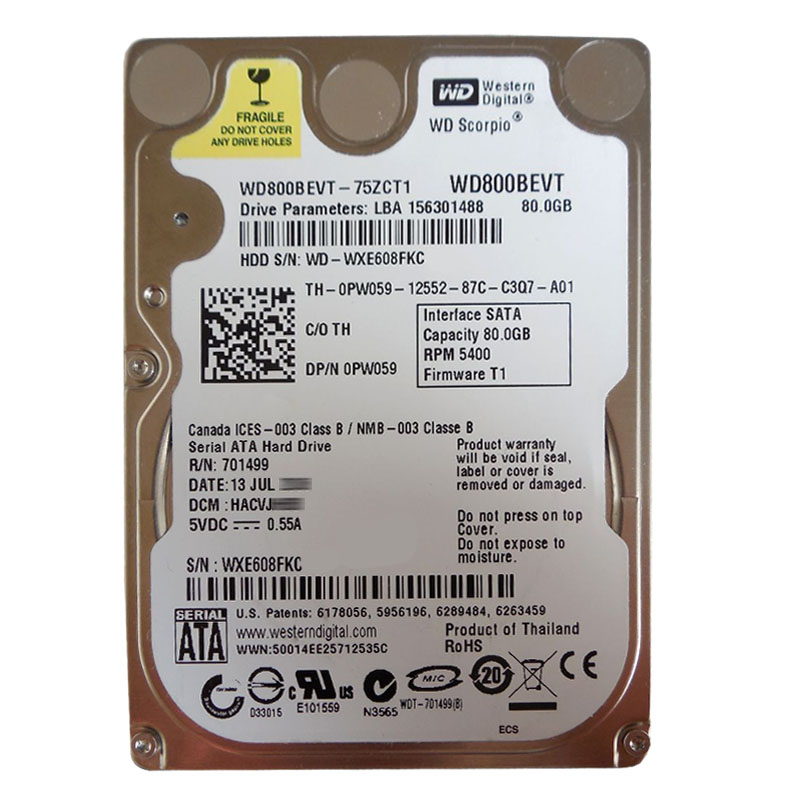 Manufacturer Part No: WD800BEVT-75ZCT1